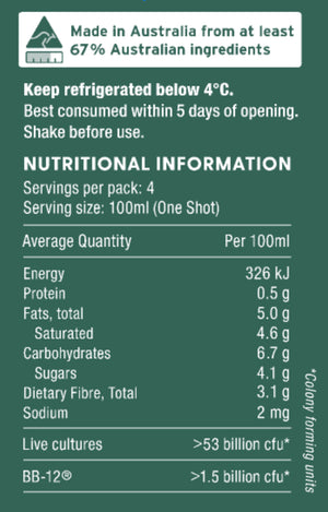 | Live cultures | >53 billion cfu* | |